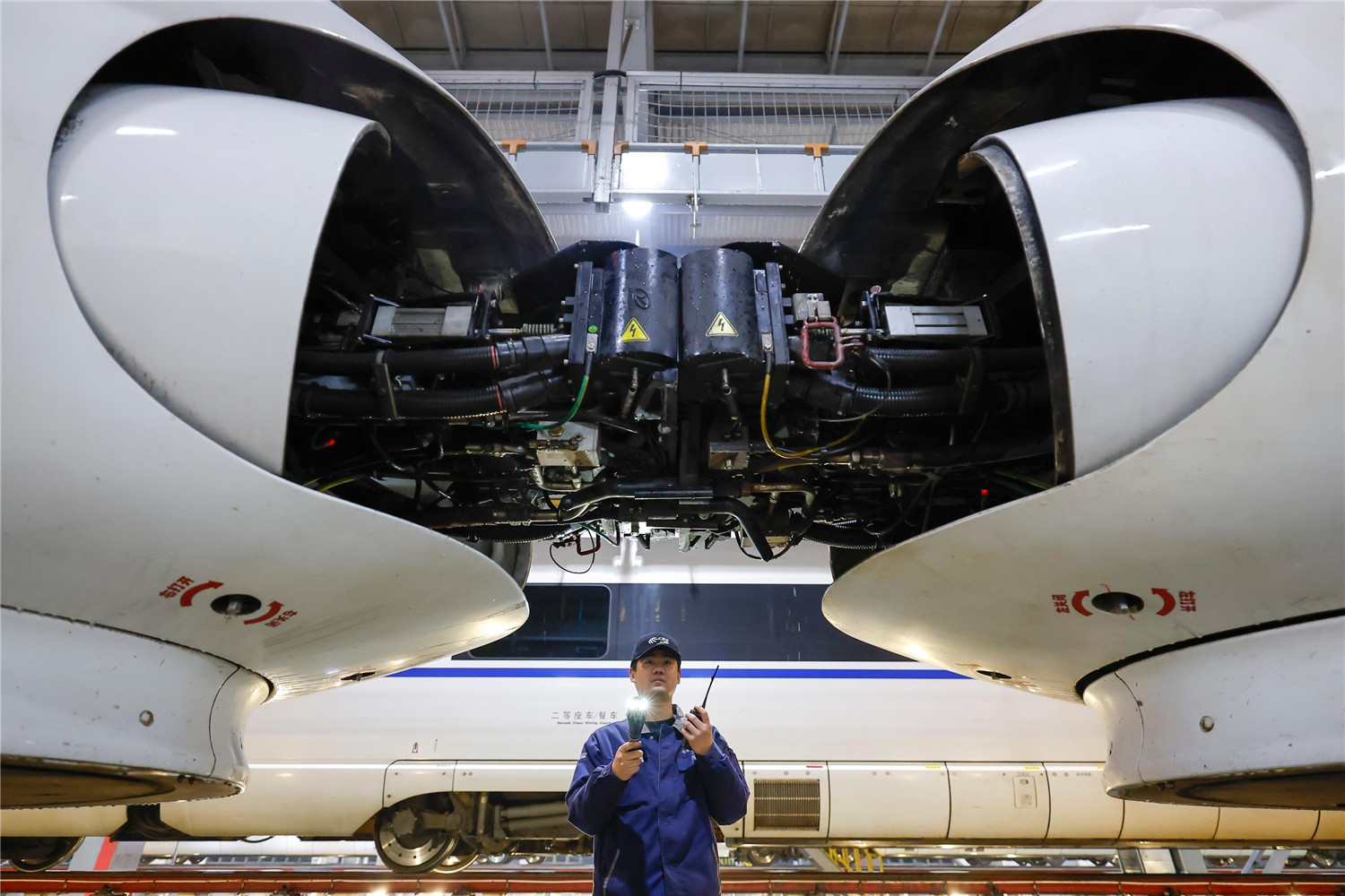 1月17日深夜至18日凌晨时分,南京动车段合肥南动车运用所,动车“医生”们对高铁列车进行检修、维护、全方位排障,确保春运期间列车运行安全。2026年铁路春运自2月2日开始,至3月13日结束 ...