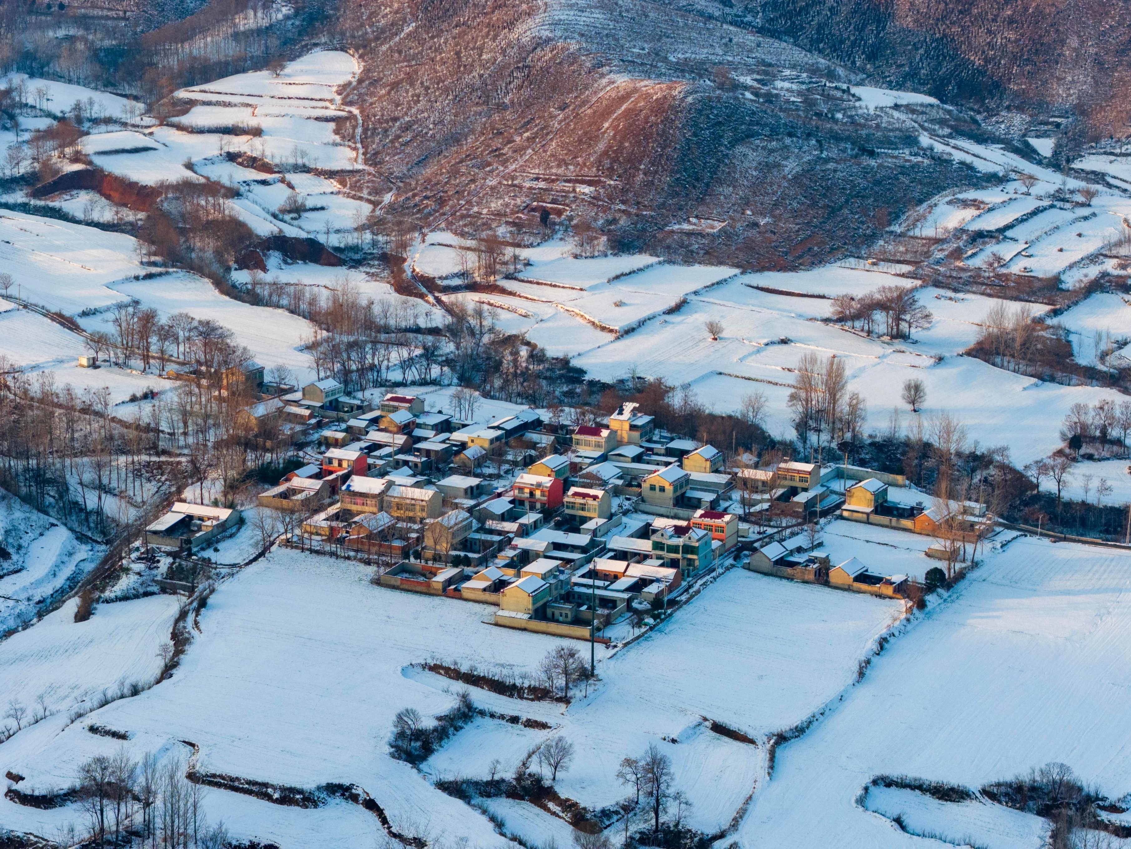 近日,航拍位于宿州市埇桥区符离镇的小山村。当日雪后初晴,远山与错落有致的民居、银装素裹的田野相互映衬,构成一幅美丽的乡村冬景图。本报通讯员张伟摄