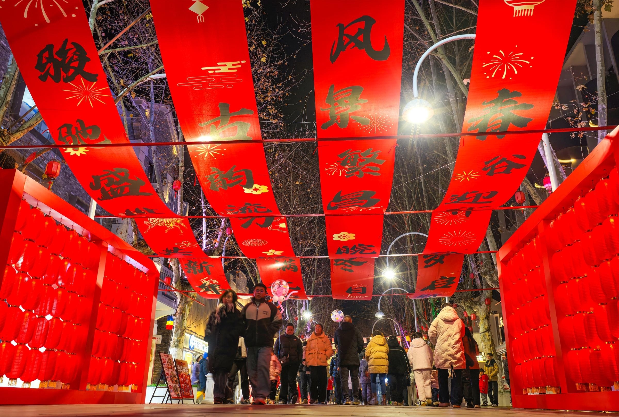随着春节的临近,芜湖街头巷尾的节日气氛越来越浓。1月16日,长街上的商铺挂满红灯笼、剪纸、春联等新年饰品,吸引市民前来选购。(记者陈剑摄)
