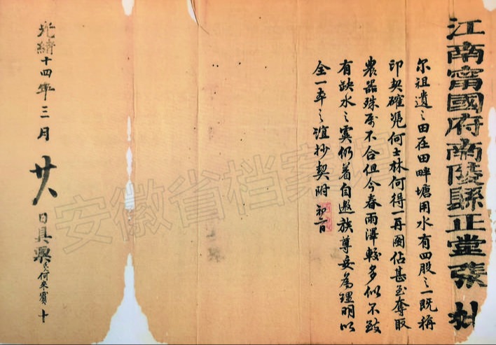 馆藏档案《光绪十四年三月二十八日正堂张批》