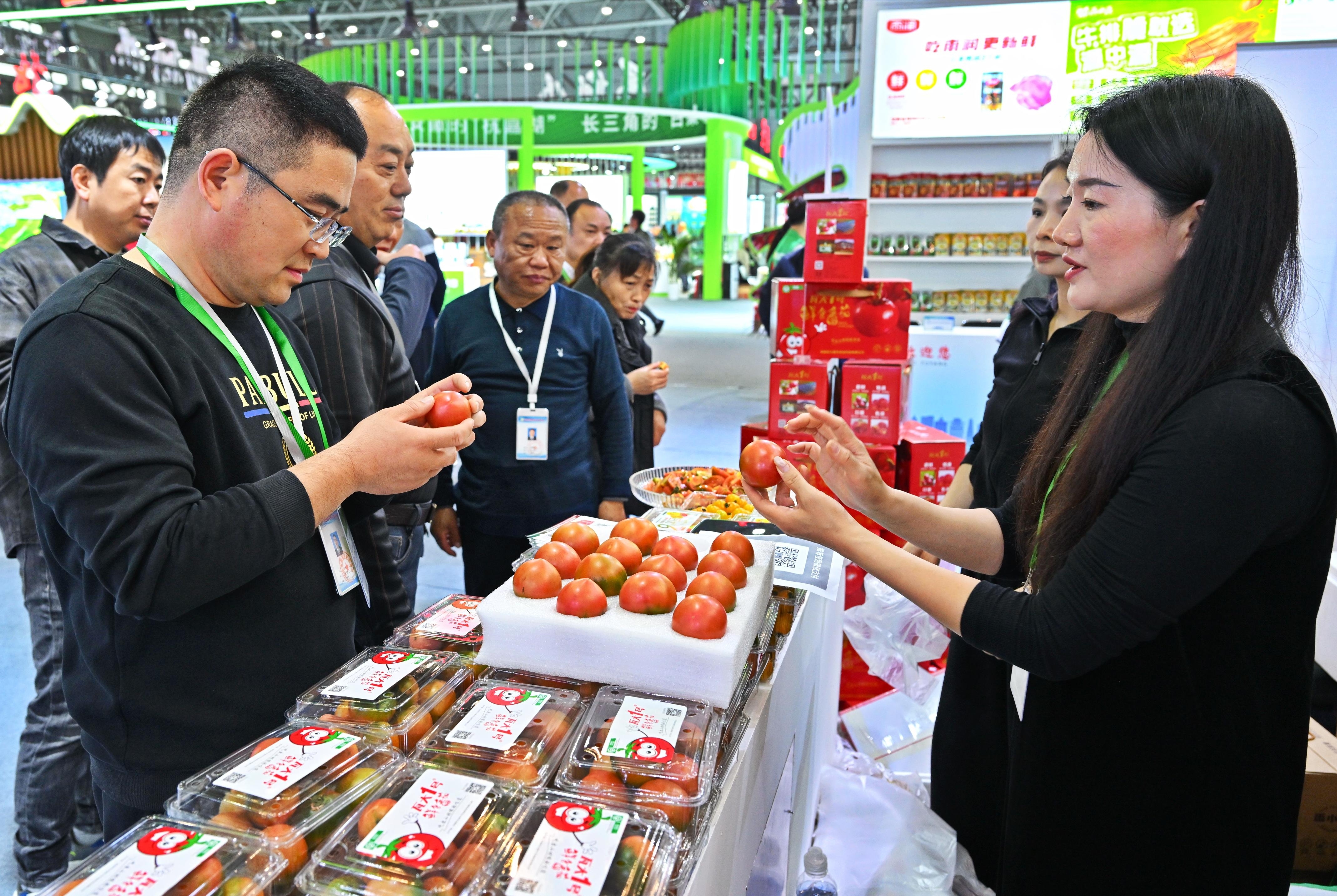 参展商向市民介绍自己的农产品。