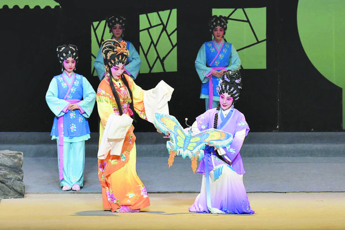 观众打卡黄梅戏《女驸马》演出现场。张雨瑶摄
