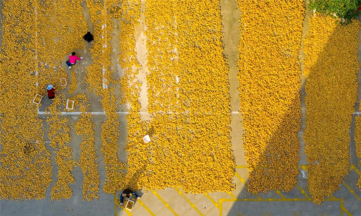 10月28日,在亳州市谯城区双沟镇王成种植合作社,农民在晾晒辣椒。本报通讯员刘勤利摄