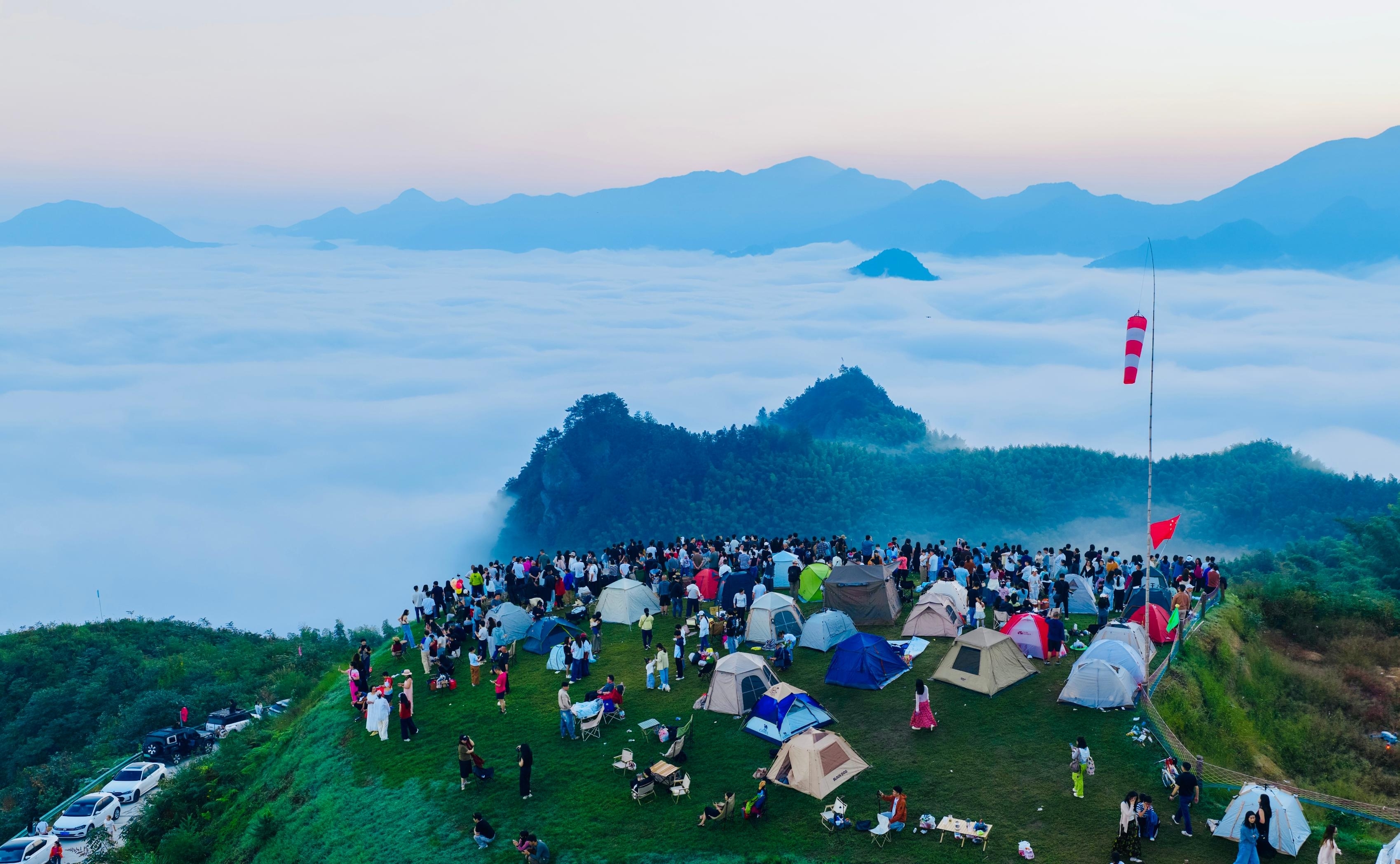 秋日清晨,宣城市旌德县白地镇高甲村的四峰庵山在缭绕的云海中若隐若现。山谷间云海翻腾,时而舒缓漫卷,时而奔涌如瀑,形成了壮丽的自然景观,吸引众多游客前来观赏。