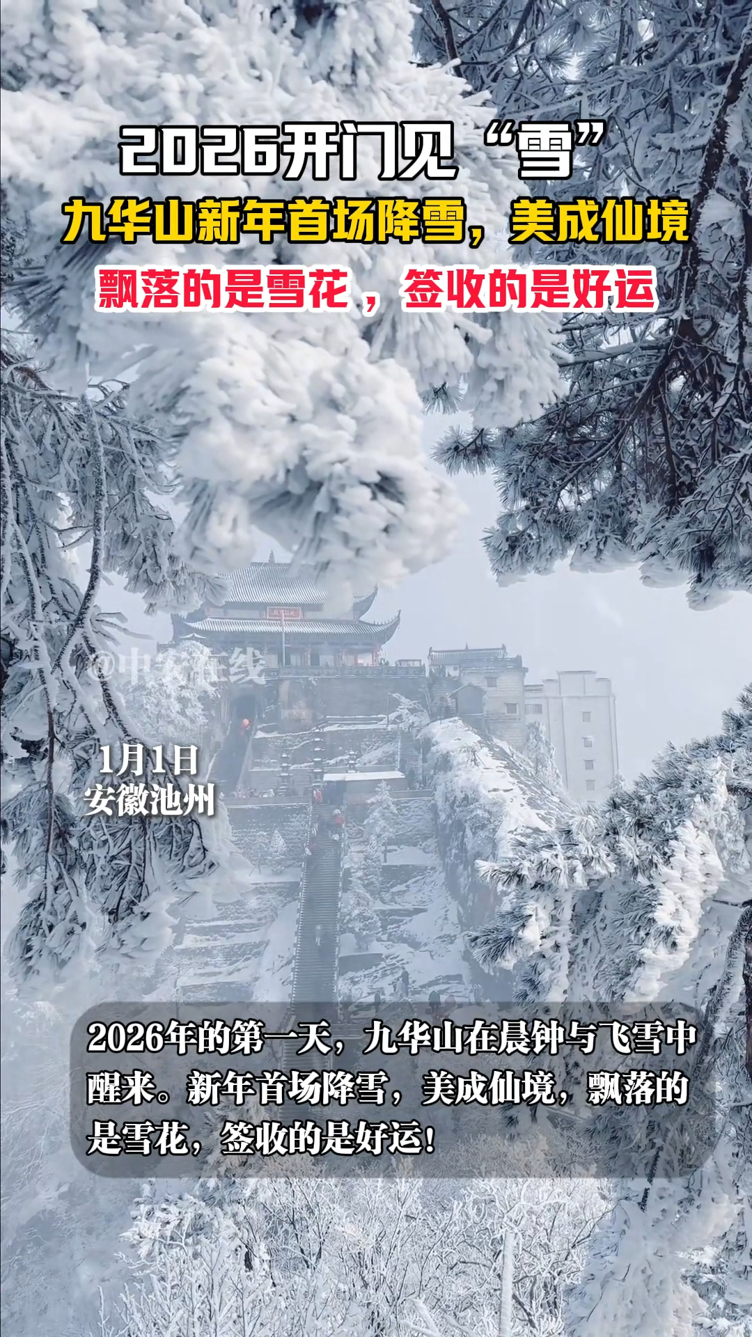 大皖新闻讯受冷空气影响,元旦假期首日,黄山风景区迎来了新年首场降雪。雪花纷飞,将奇松、怪石、峰林装点得如诗如画。