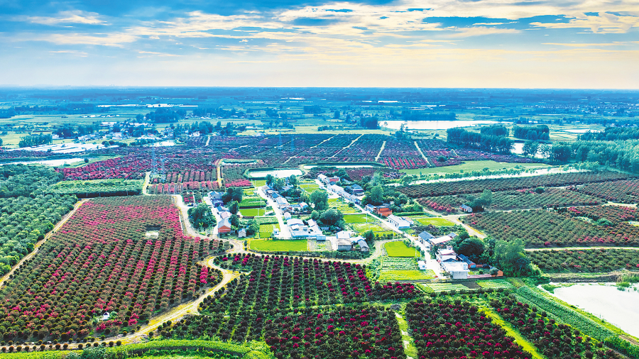 6月28日,肥东县杨店乡胜利社区,千亩紫薇进入盛开期。紫色的花朵缀满枝头,花团锦簇,美丽乡村如诗如画。 (通讯员 罗祥勇 摄)