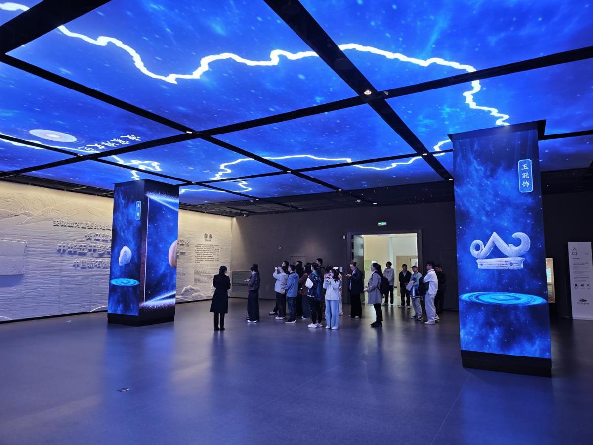“文明互鉴”展厅陈列了凌家滩文化与红山文化、良渚文化等文化之间交流互鉴的历史痕迹,揭示了新石器时代各文化彼此间的交流、交融与接续。导游告诉我们,同是距今5000年左右,凌家滩的玉龙和红山、良渚等遗址出土的龙型文物在形态、材质和工艺上均存在相似之处,这种“撞脸”充分展示了中华文明起源阶段多元一体、繁星璀璨的历史文化面貌。(记者 彭娜)