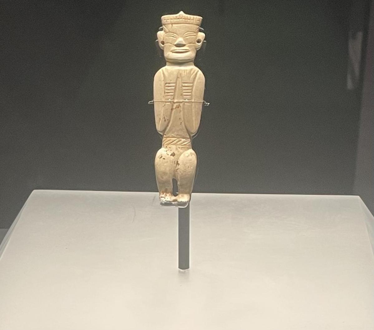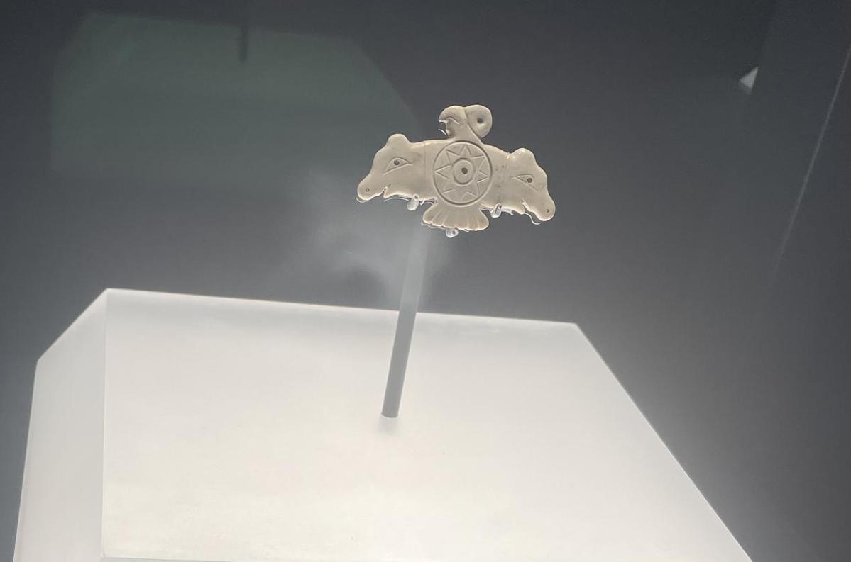 馆中重点呈现了凌家滩出土的精美玉礼器、石器、陶器等珍贵文物,包括首尾相连的双面圆雕玉龙,刻有八角星纹的玉鹰,造型生动的玉人,体现宗教礼仪的玉龟、玉版、玉猪,以及已知史前最大的石钺等,无一不反映出先民的匠心巧思与精湛技艺。来自安徽本省的游客张先生说:“我印象最深的文物是那件玉鹰,它的独特造型融合了鹰、猪和太阳元素,透过它能感受到先民的自然崇拜。”