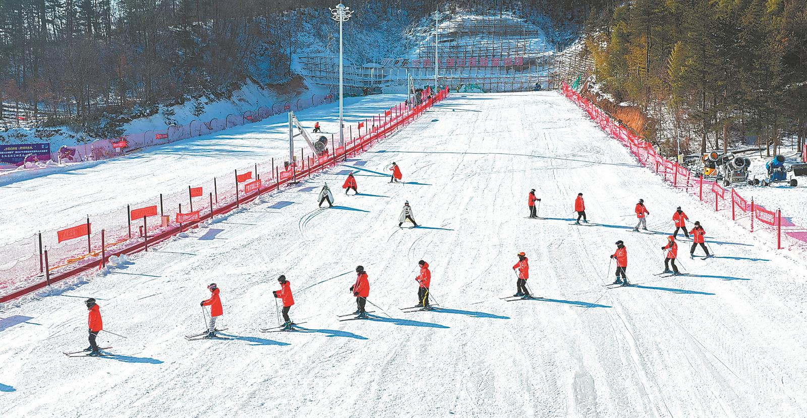 1月24日,冰雪运动爱好者和游客在岳西大别山国际滑雪场,开展滑雪、玩雪、赏雪和冰雪趣味运动会等活动,为冬日的大别山区注入了炽热活力。 本报通讯员 王先国 摄