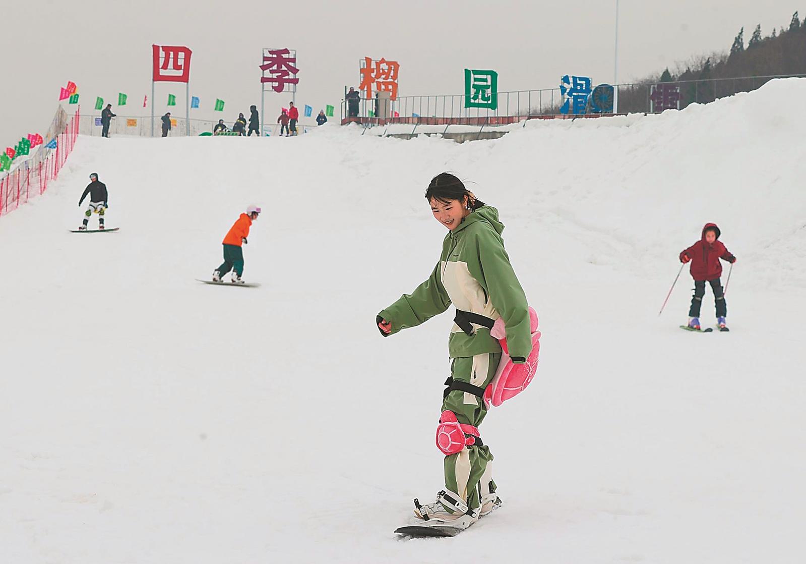 1月25日,游客在淮北市烈山区四季榴园滑雪场游玩,尽享冰雪运动带来的快乐。本报通讯员 冯树风 摄