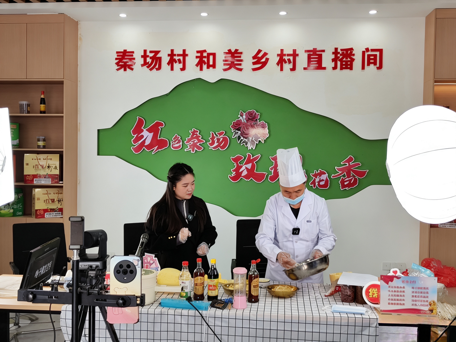 泗县和美乡村直播间展示金丝绞瓜加工过程。本报通讯员 吴天元 摄