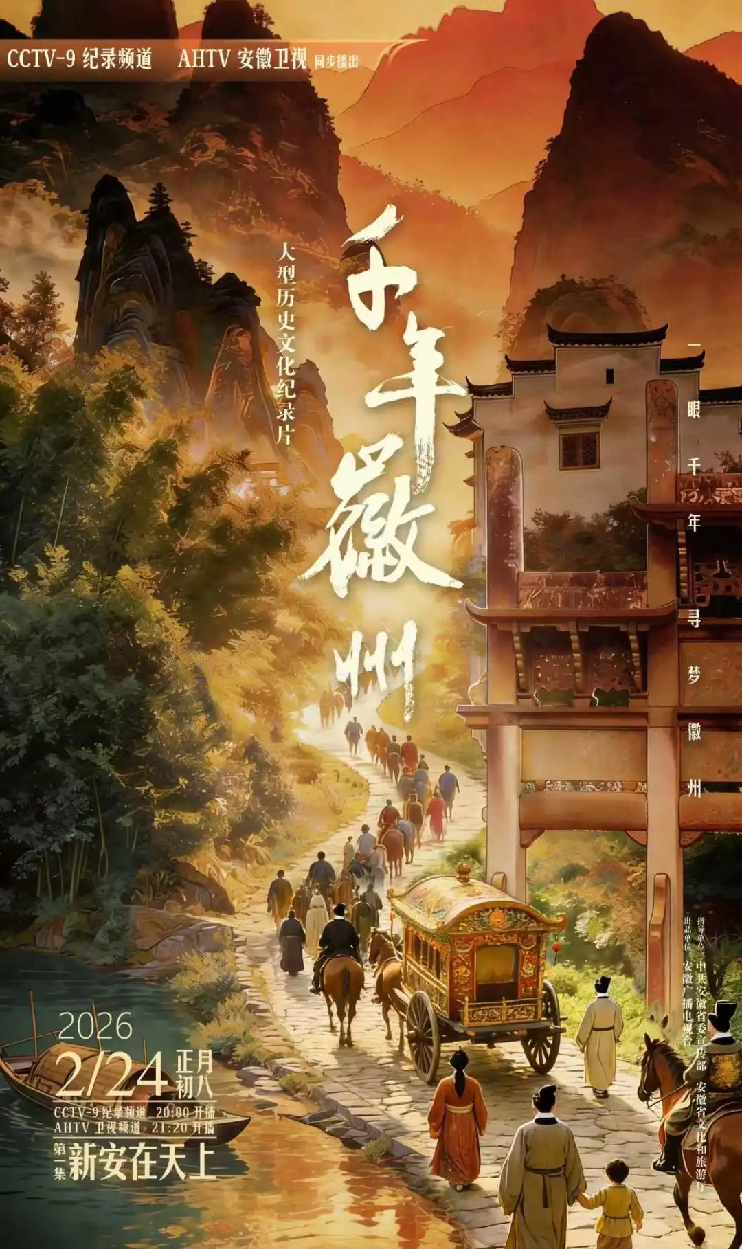 2月24日,该纪录片在央视纪录频道、安徽卫视频道同步播出。这部由安徽广播电视台出品的力作,融合百年徽学研究成果,用鲜活的影像让徽州文化走出典籍、走出古村,成为这个新春里观众触摸中华优秀传统文化的重要窗口。